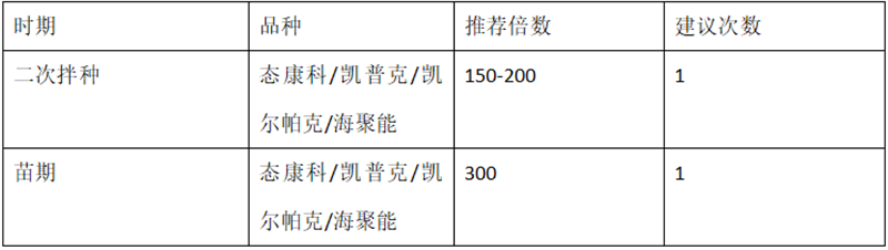 (2)推薦施肥套餐(根據(jù)用肥次數(shù)分類(lèi),結(jié)合目標(biāo)產(chǎn)量、地域、品種、地力等適當(dāng)調(diào)整)